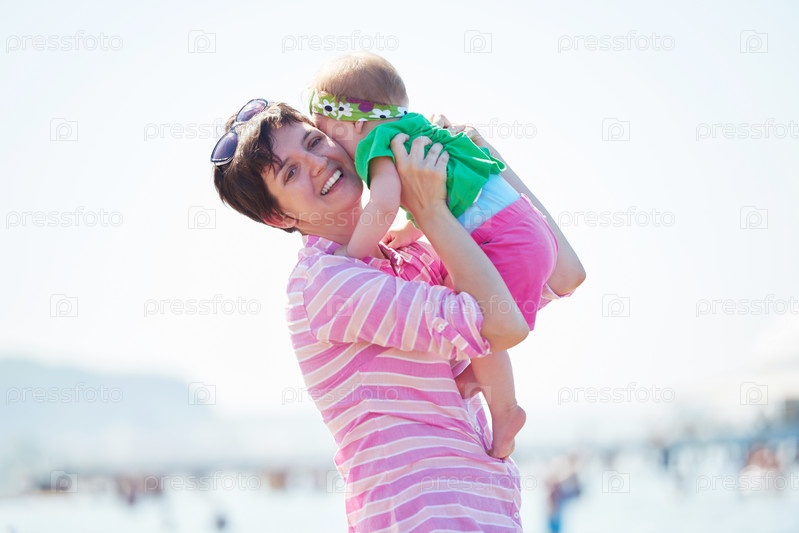 Мама и ребенок на пляже