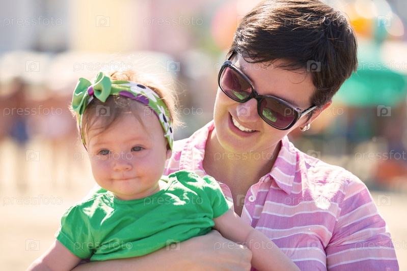Мама и ребенок на пляже