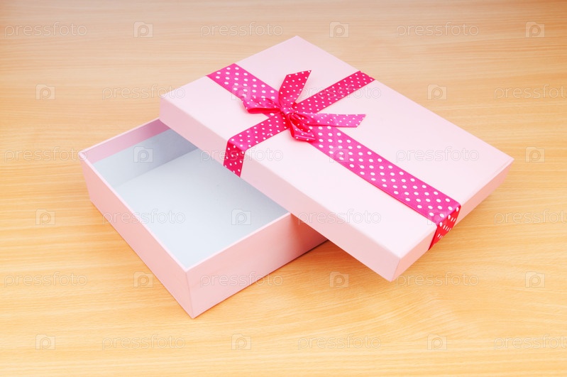 Пустая подарочная коробка на деревянном столе