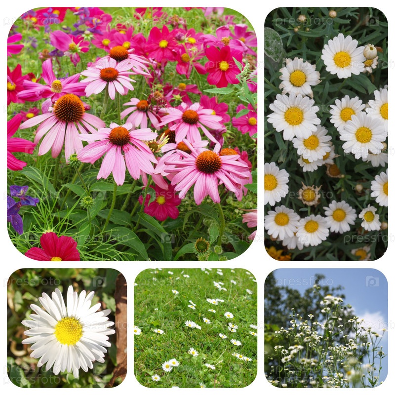 Коллаж из белых и розовых ромашек