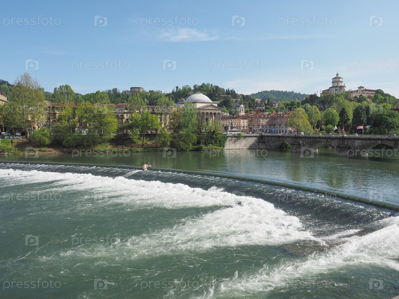 Река и церковь в Турине Италия