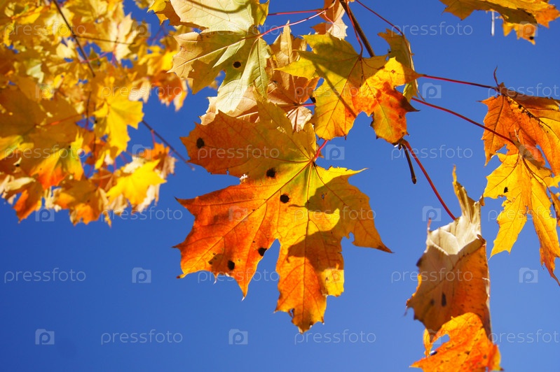 Желтые листья на фоне голубого неба