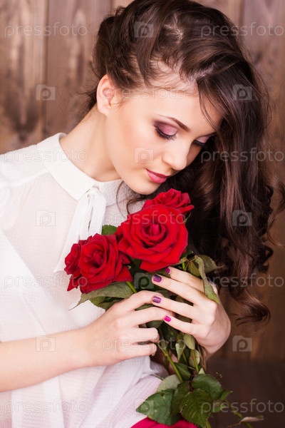 Красивая девушка с красными розами
