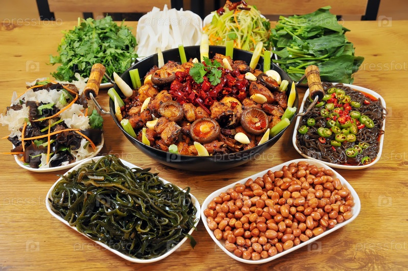 Китайская еда горячий горшок