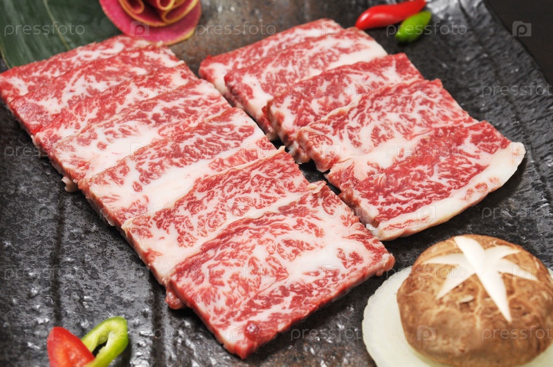 Ломтики сырой говядины