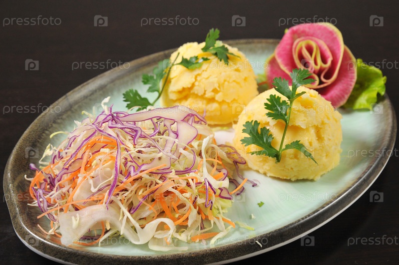 Картофельным пюре и овощами