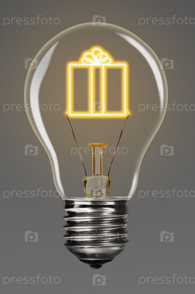Лампочка с горящими подарком внутри