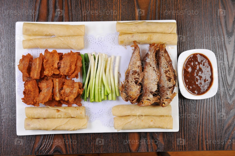 С видом на рыбу и Жареные свиные ребрышки
