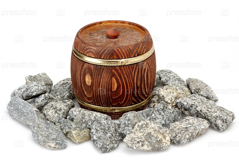 Старая бочка среди камней на белом фоне
