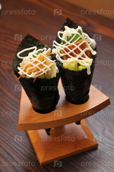стойка для ролла и овощи