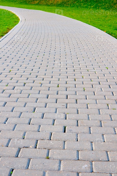 Кирпичная дорожка среди газонов