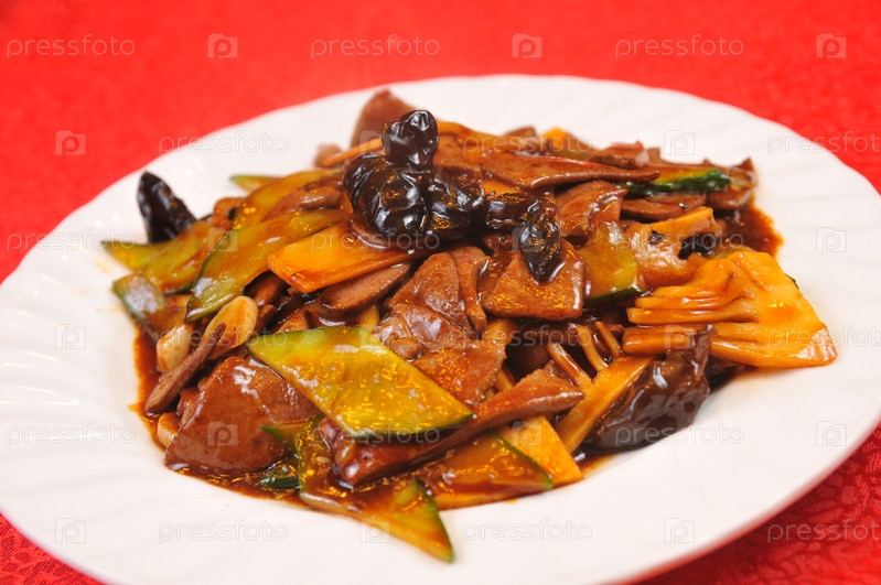 Сушеные побеги бамбука и жареная свиная печень