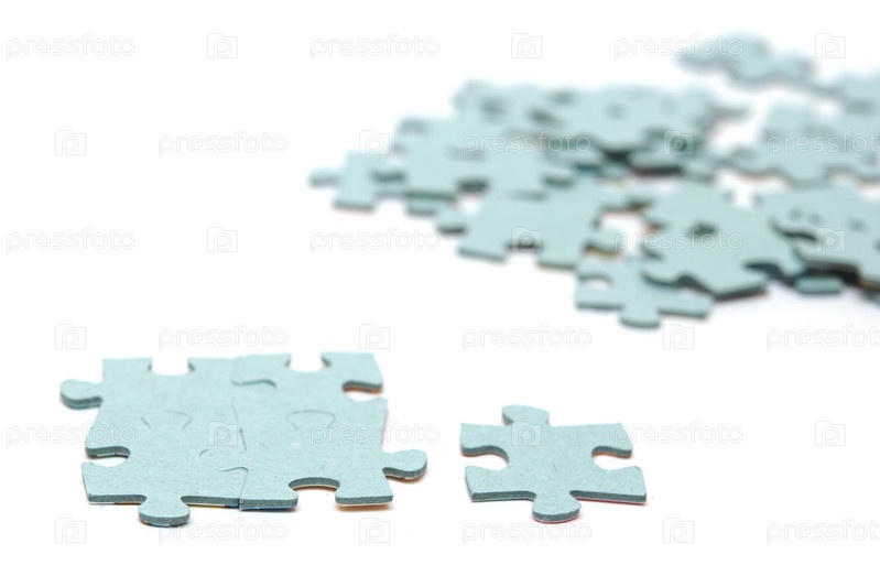 Кусочки головоломки на белом фоне