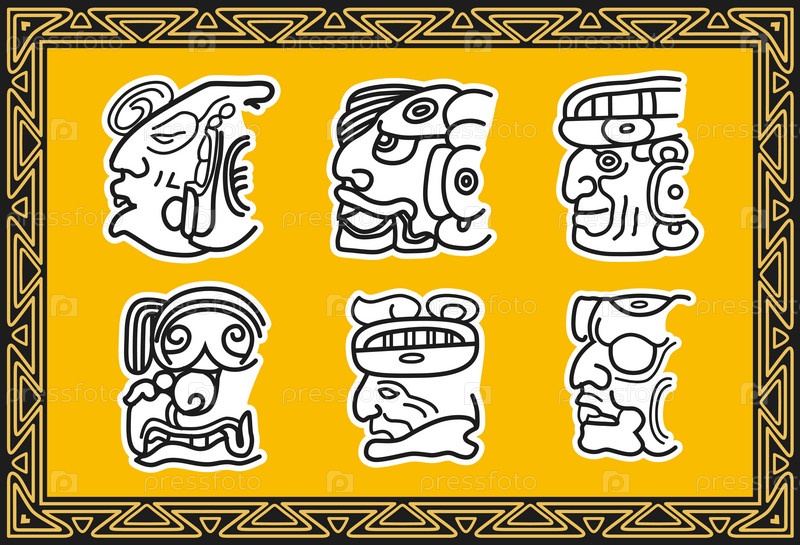 Набор шаблонов древних индейцев. Лица