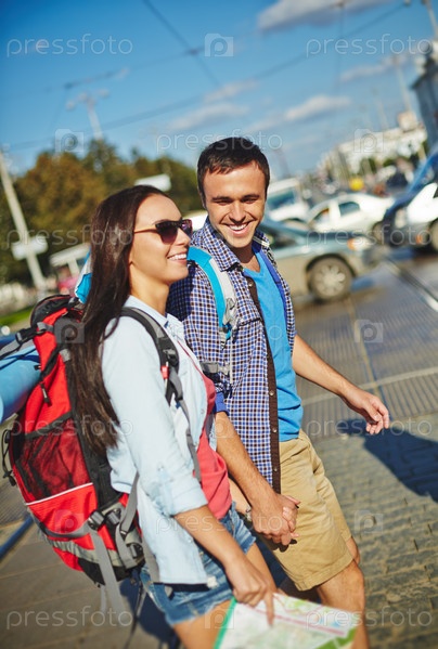 Счастливые туристы, молодая пара