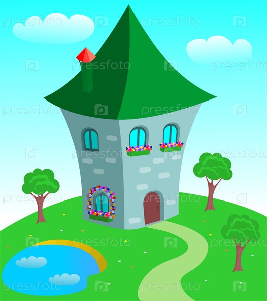 Дом на зеленой лужайке