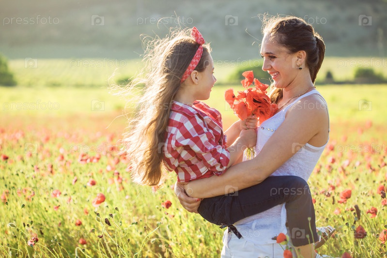 Мать с ребенком в поле весной