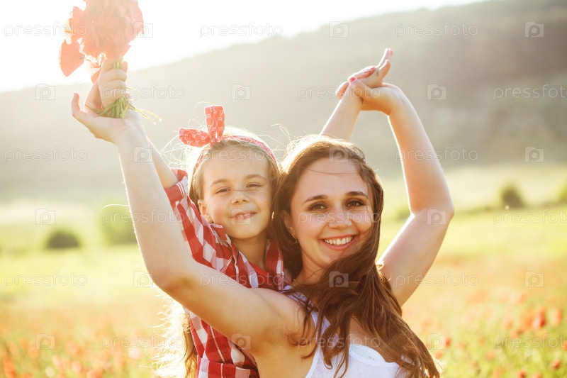 Мать с ребенком в поле весной