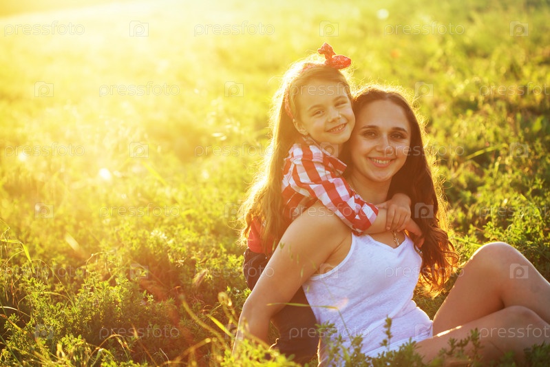 Мать с ребенком в поле весной