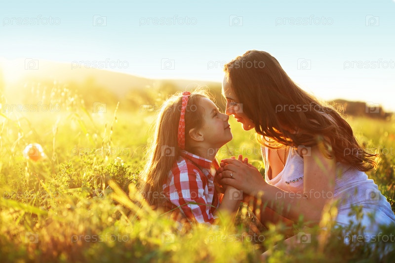 Мать с ребенком в поле весной