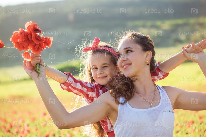Мать с ребенком в поле весной