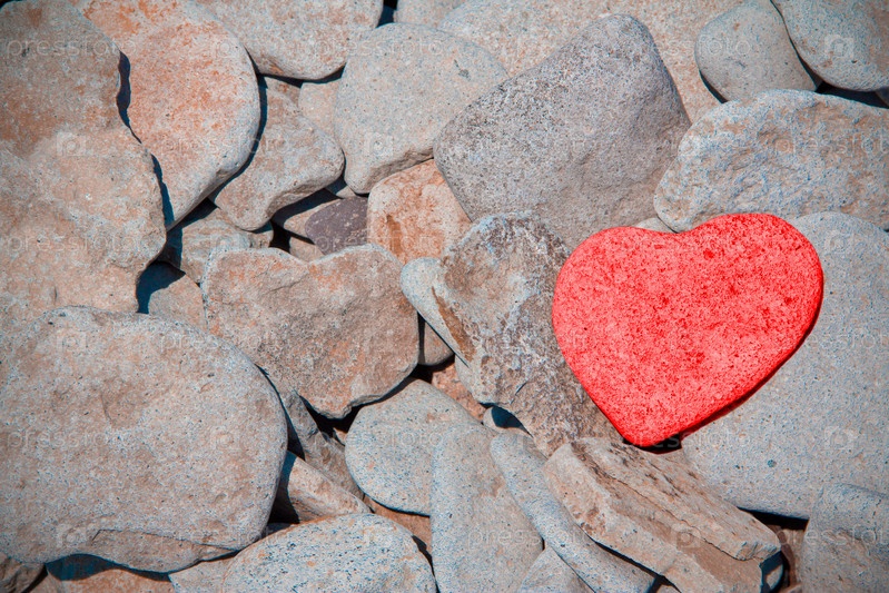 Красное сердце среди камней