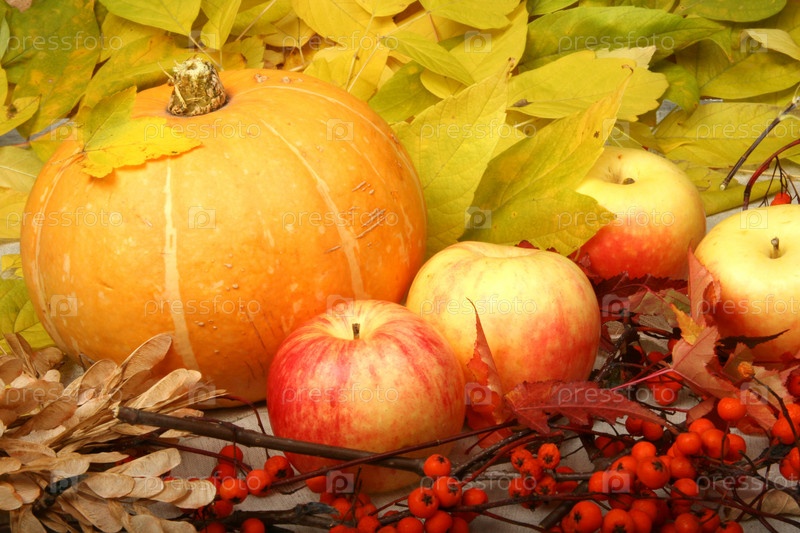 Тыква, яблоки и ягоды рябины