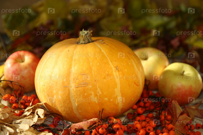 Тыква, яблоки и ягоды рябины