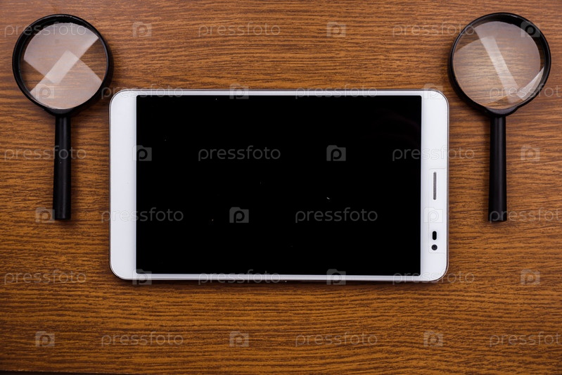 Гаджет на деревянном столе