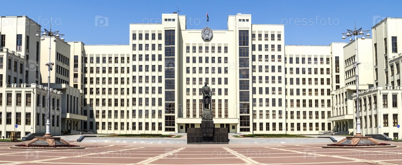 Панорамный вид на памятник В.И. Ленину и Дом правительства, Минск, Беларусь