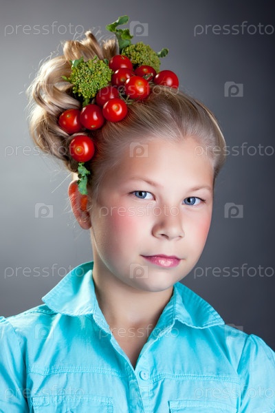 Красивая девочка с овощами