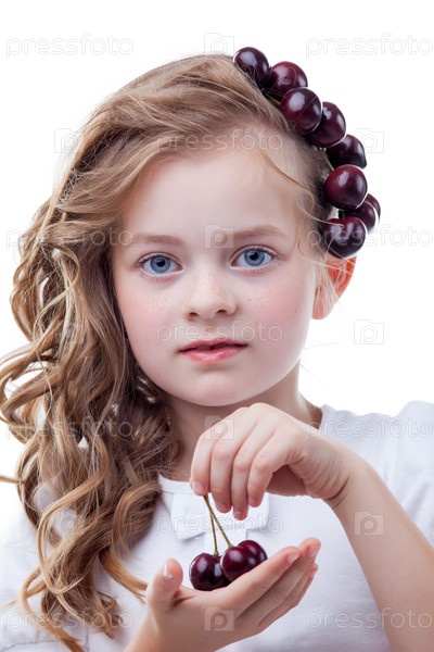 Красивая девочка с вишней