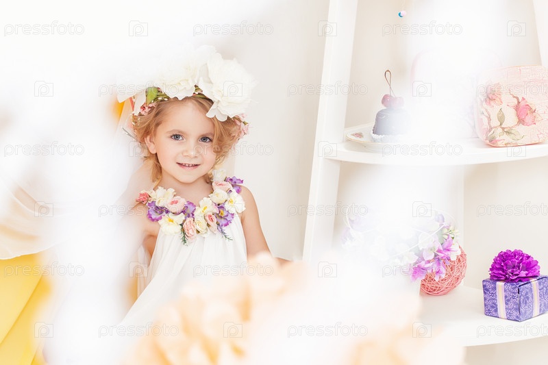 Красивая маленькая девочка в белом платье