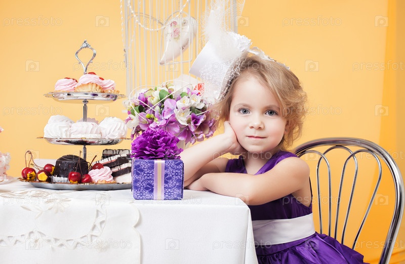 Красивая маленькая девочка в лиловом платье