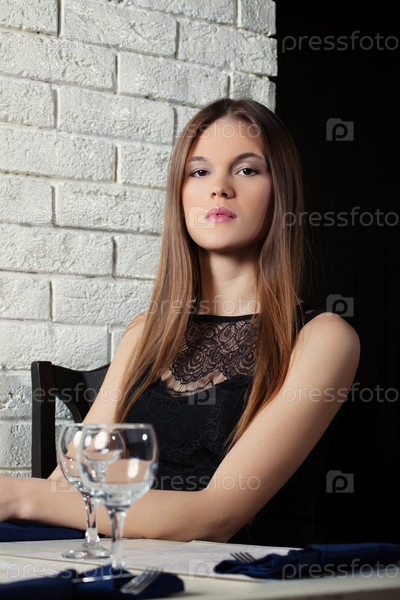 Чувственная молодая девушка позирует в кафе