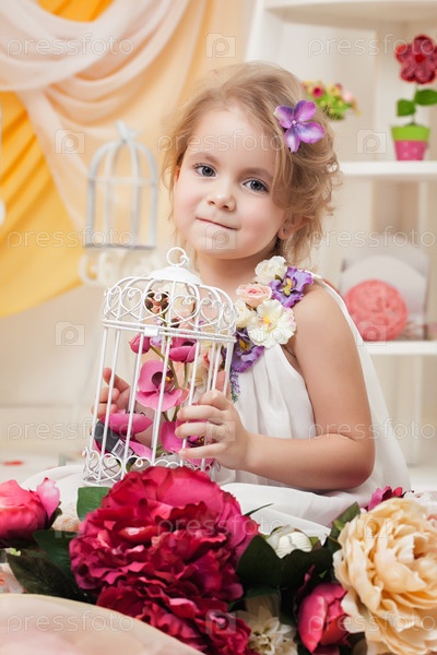 Красивая девочка с клеткой