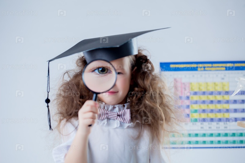 Девочка смотрит через лупу