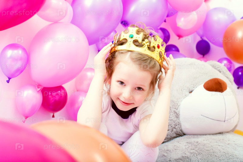 Красивая маленькая девочка в короне в игровой комнате