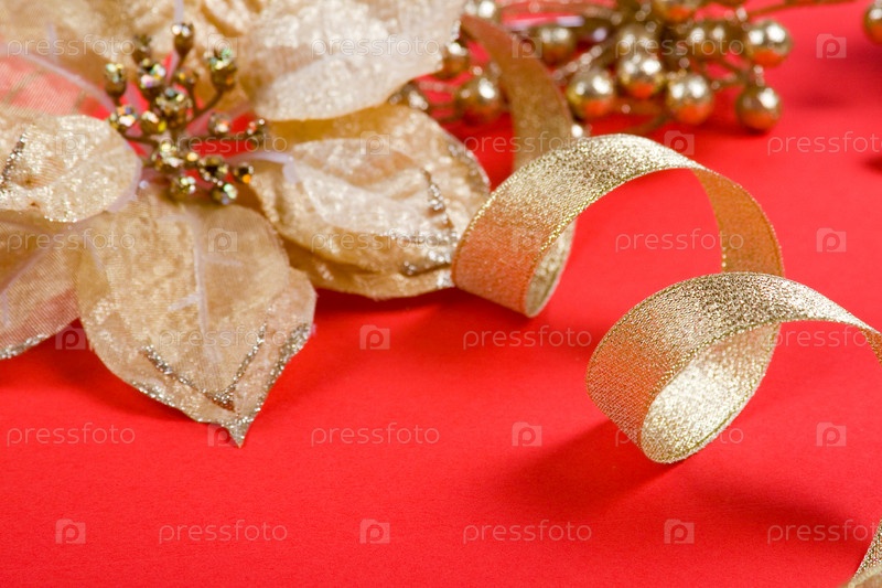 Новогодние украшения на красном фоне