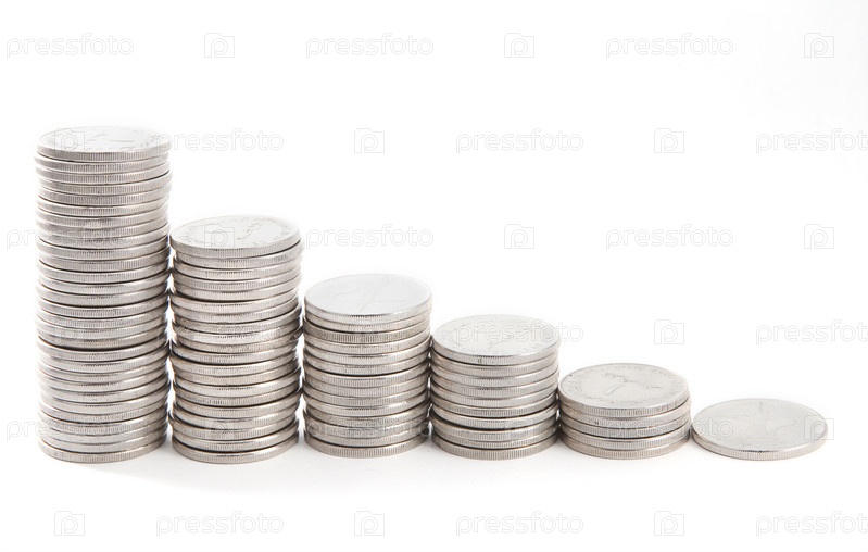 Диаграмма из столбиков монет на белом фоне