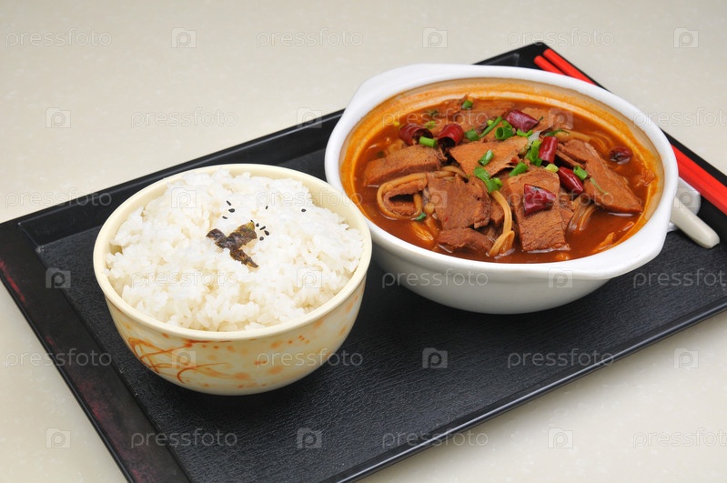 Мясо в соевом соусе и рис