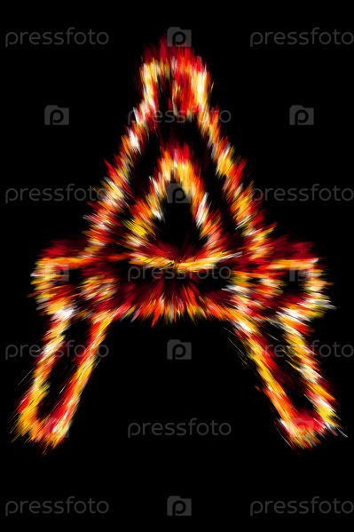 Огненная буква А на черном фоне