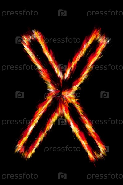 Огненная буква X на черном фоне