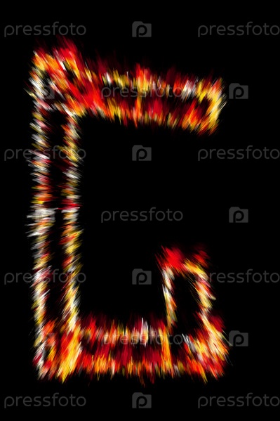 Огненная буква G на черном фоне
