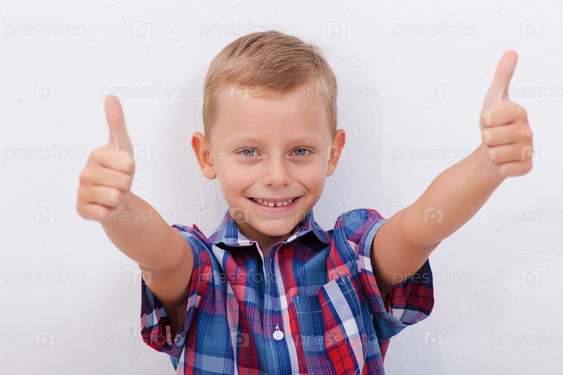 Счастливый мальчик показывает пальцы вверх