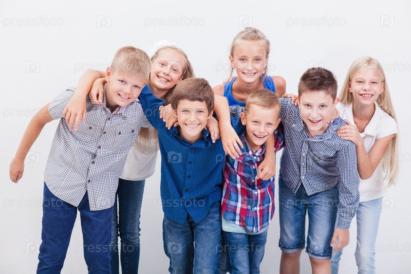 Радостные дети на белом фоне