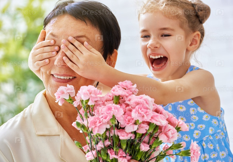 Радостная бабушка с внучкой