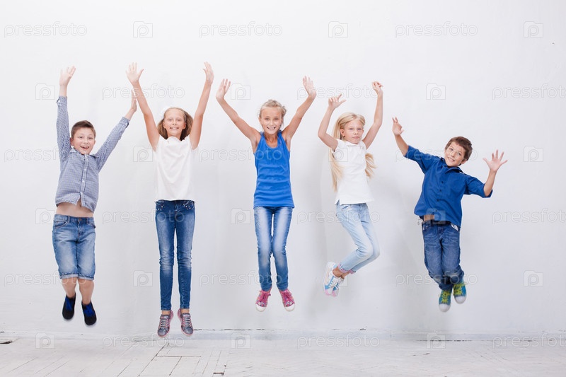Счастливые дети в прыжке