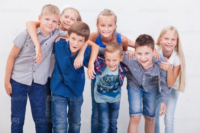 Счастливые дети на белом фоне