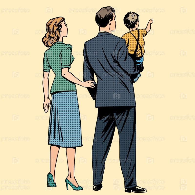 Семейный папа мама сын со спины